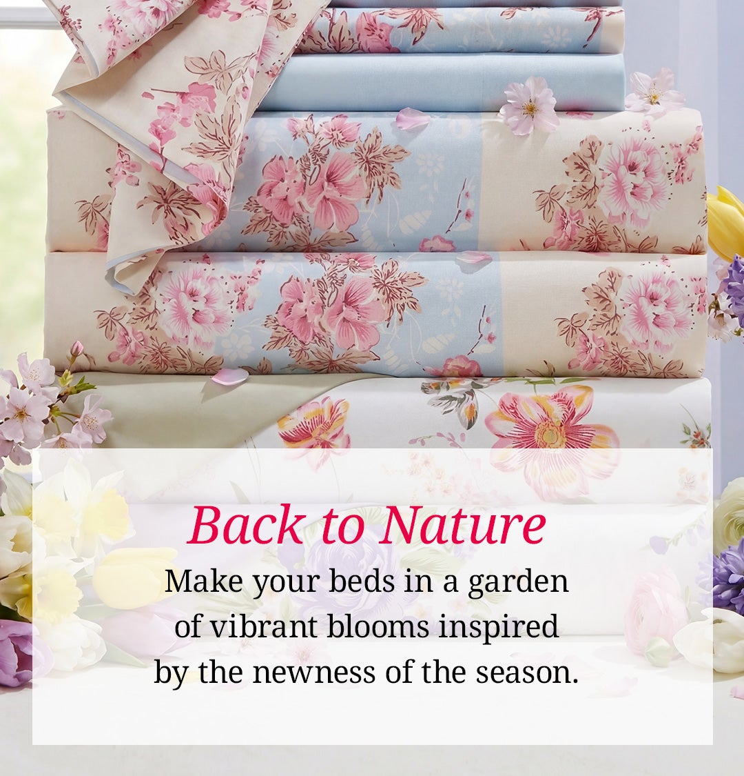A burst of blush, pretty petals and fresh greens. Fill your home