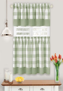 Tier and cafe curtains can be used alone or paired with a valance. This curtain style is hung at the horizontal midline of your window and still lets in plenty of light from the exposed window above while providing major privacy below. If you wish to still admire the view from your window, then choose a tier or cafe curtain pair (featuring a vertical middle split) for easy opening. Tier and cafe curtains also look great on all types of windows, including bay windows and windows above sinks and countertops.