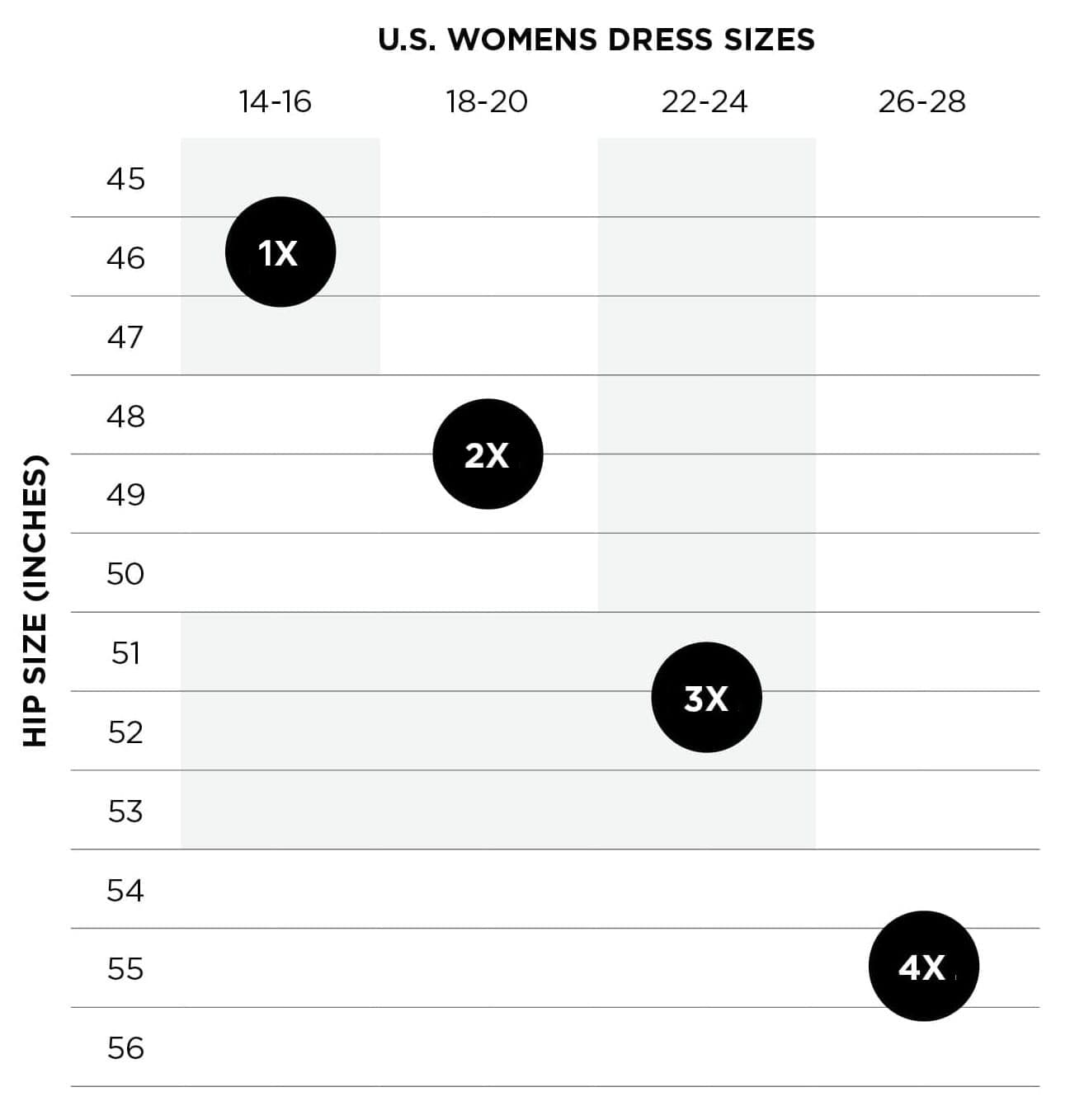 34/36 (5X) 34 60 - 62 55 - 57 63 - 65