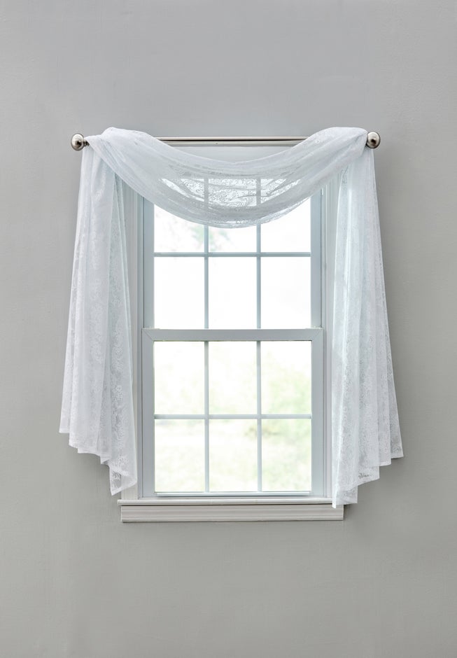 Crafted from durable polyester, this lace window scarf offers the elegant look of traditional lace with modern-day convenience. The lightweight fabric allows light to filter through while adding texture and dimension to your home décor. Machine washable for easy care, it maintains its graceful drape and airy beauty season after season.