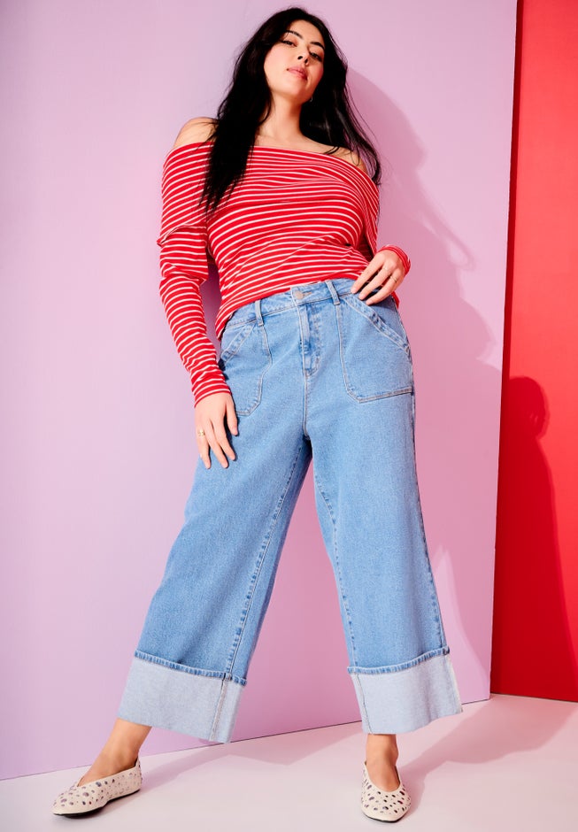 Wide-Leg Cropped Cuffed Jeans